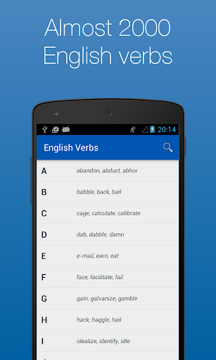 Overview: View almost 2000 English verbs in 20 tenses. With simple navigation and built in search, you can find the verb you need in seconds.