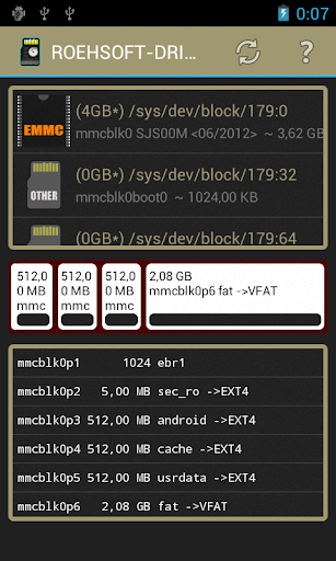 Manage,repair and modify Tool for Android SD/HD/FLASH Drives. Save Time for Power Users. This App is not for Beginners or normal User! You can Create Partitions on all external Drives. And Check and repair the internal NAND and eMMC ext4 and vfat drives.For all Operations on Android you need Kernel Filesystem Support.